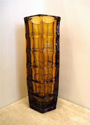 As purveyors of vintage glass, we try to offer options both luxurious and alternatively more accessible. The top vase was designed in 1935 by Elis Bergh for Kosta and represents the high end. The amber piece below has a similar window pane optic effect, but is a more affordable German vase from 1960s.